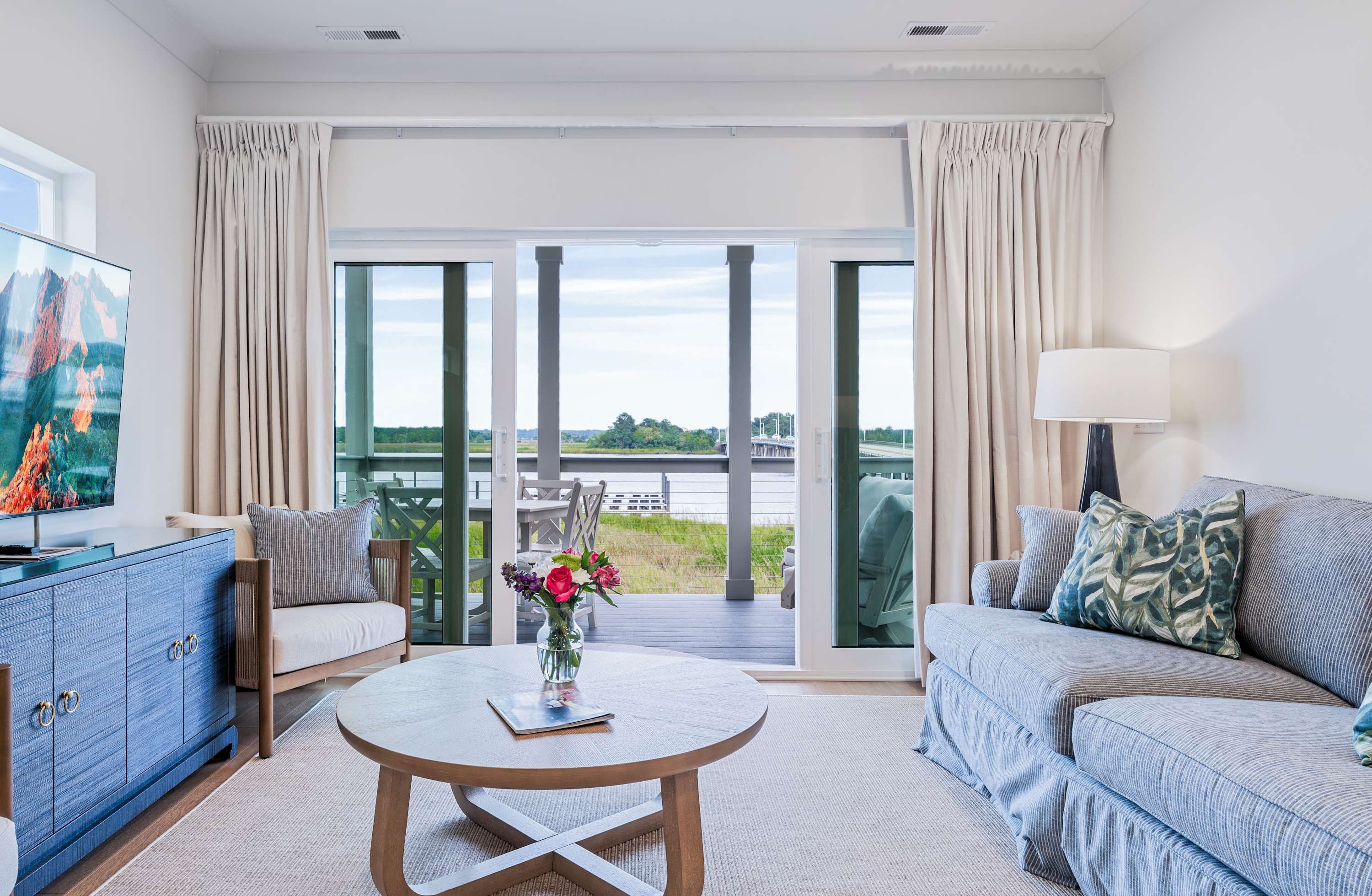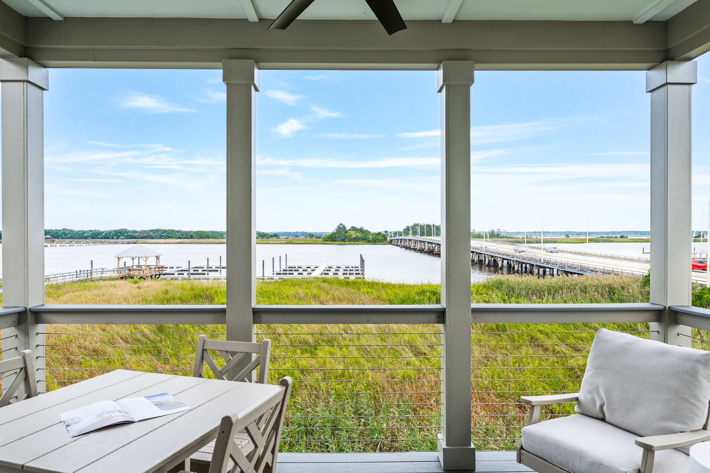 - A private covered porch to enjoy your morning coffee with breathtaking views of the marsh and bay.